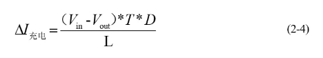 在充電時可得到公式(2-4),充電時電感兩端的電壓等于Vin-Vout,