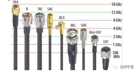 下圖給出了常用射頻接頭和線纜的工作頻率。