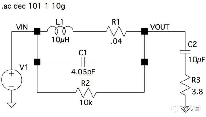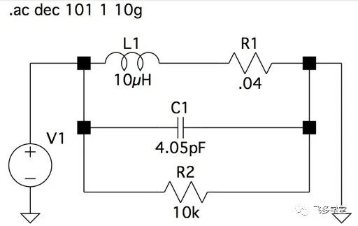 從這里開始,使用電路仿真潤建可以節(jié)省時間。免費的模擬器LTspic使用下圖的仿真原理圖創(chuàng)建了上圖的電感阻抗圖。