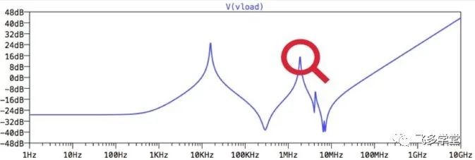 上面的無阻尼共振頻率為1.87兆赫。這是一個脈沖負載會引起問題的一個頻率。