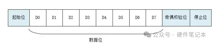雙方約定好相同的速度,比如115200bps,以這種數(shù)據(jù)包的形式給對(duì)方發(fā)送數(shù)據(jù),一次發(fā)送8位,也就是一個(gè)字節(jié)的數(shù)據(jù)。