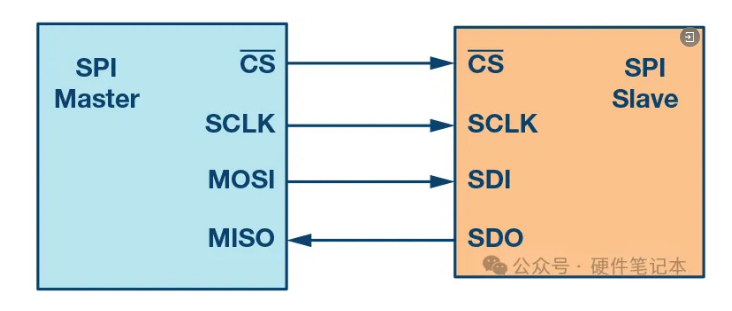 那如果在通信雙方之間加一個(gè)clock時(shí)鐘信號(hào),不給通信雙方約定相同的速度,我們只需根據(jù)時(shí)鐘信號(hào)的上升沿進(jìn)行發(fā)送接收數(shù)據(jù),大大提高了通信速率,于是產(chǎn)生了SPI通信,它可以輕松突破10M。