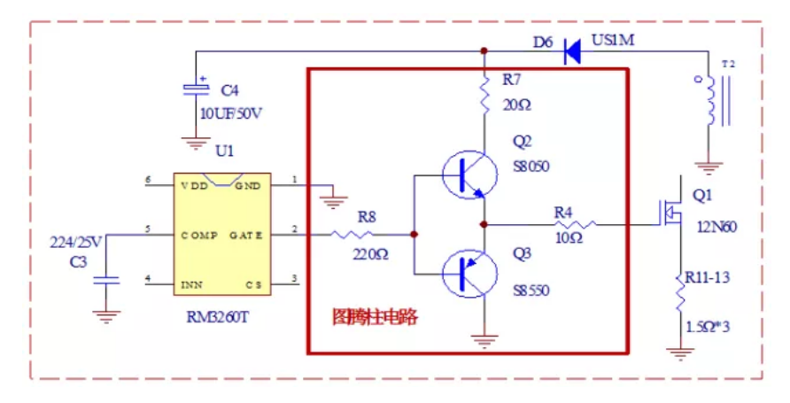 圖騰柱型驅(qū)動電路的作用在于:提升電流驅(qū)動能力,迅速完成對于門極電荷的充電或者放電的過程。