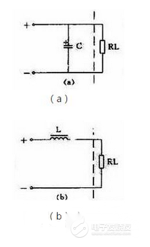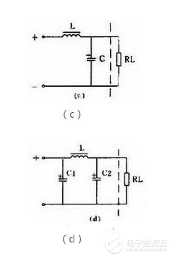 用1個電感和1個電容組成的濾波電路因為象一個倒寫的字母“L”,被稱為L型,見圖1(c)。用1個電感和2個電容的濾波電路因為象字母“π”,被稱為π型,見圖1(d),這是濾波效果較好的電路。
