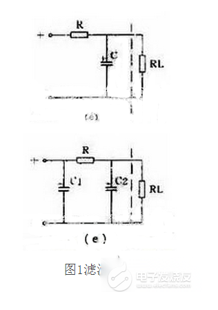 電感器的成本高、體積大,所以在電流不太大的電子電路中常用電阻器取代電感器而組成RC濾波電路。同樣,它也有L型,見圖1(e);π型,見圖1(f)。