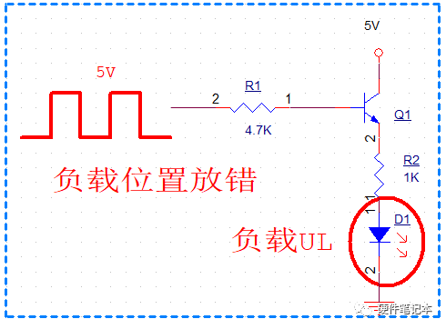 假設(shè)驅(qū)動信號高電平為5V,當(dāng)負(fù)載不是LED時,負(fù)載上的壓降設(shè)為UL,