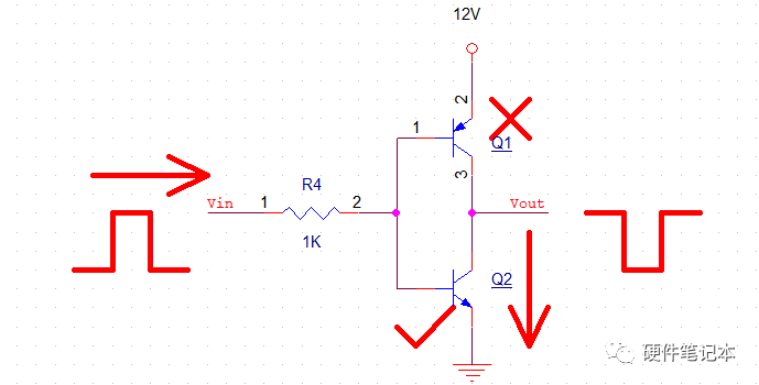 當(dāng)輸入高電平12V時,下管Q2導(dǎo)通,