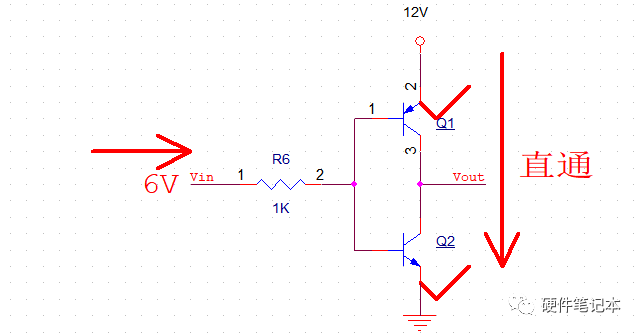 當(dāng)輸入低電平0V時,上管Q1導(dǎo)通,