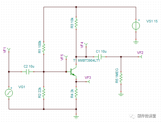 基于上面的分析,需要我們把輸入信號的頻率降下來,三極管電路才能表現(xiàn)出明顯的放大作用。
