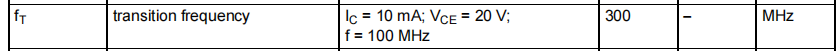 敲黑板,知!識!點!來!了!三極管有個參數(shù)“特征頻率fT”,當晶體工作頻率超過一定值時,β值開始下降。當β值下降到1時,所對應的頻率即為該管的特征頻率。在三極管的Datasheet上,一定會標注出來該數(shù)值。如下圖所示,即為MMBT3904L的fT值,300MHz。