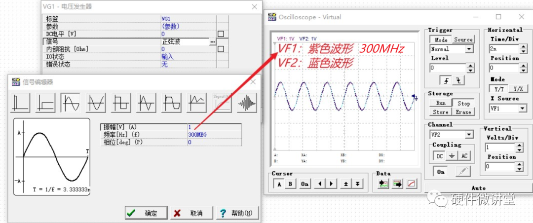 如果我們把VF1的頻率調(diào)整為300MHz,又會怎樣呢?再仿真看一下。