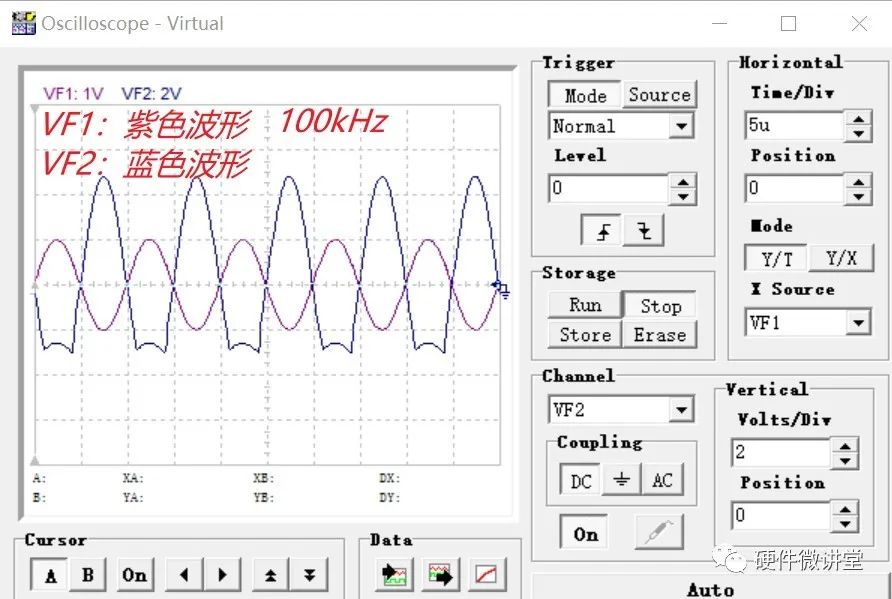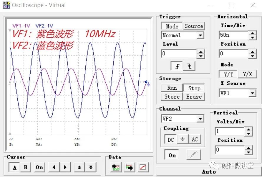 如上圖所示,VF2確實表現(xiàn)出明顯的放大波形。
