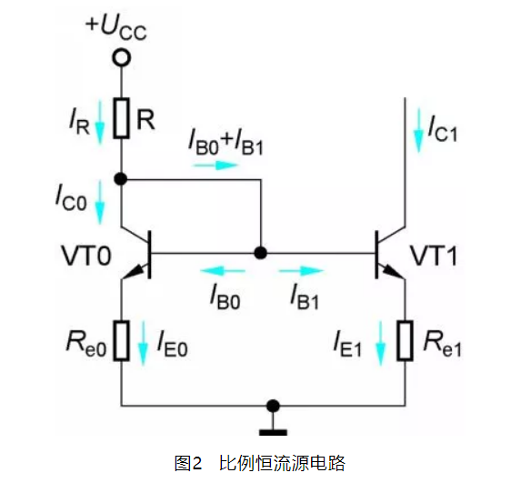 與典型的靜態(tài)工作點穩(wěn)定電路一樣,Re0和Re1是電流負反饋電阻,因此與鏡像恒流源電路相比,比例恒流源的輸出電流IC1具有更高的穩(wěn)定性。