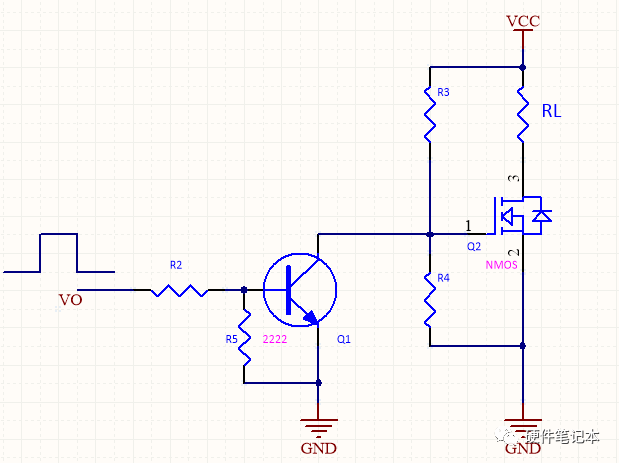 當I/O為低電平時,三極管不導通,MOS管通過電阻R3,R4分壓,為柵極提供合適的閾值電壓,MOS管導通,負載RL正常工作。