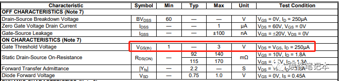 ②MOS管是電壓控制型,驅動電壓必須高于閾值電壓Vgs(TH)才能正常導通,不同MOS管的閾值電壓是不一樣的,一般為3-5V左右,飽和驅動電壓可在6-8V。