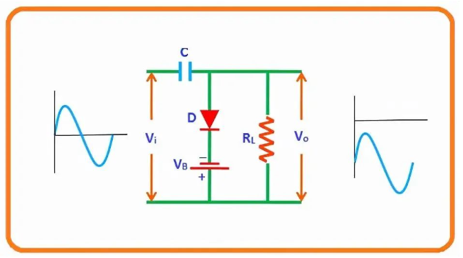 鉗位電路也稱為直流電阻,主要功能是將一些直流電平添加到輸入交流信號(hào)中。下圖中顯示了鉗位電路,它在輸入交流信號(hào)中添加了一個(gè)正直流電平。
