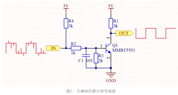 ?如圖1是無刷電機霍爾信號的濾波電路,為了保證波形質(zhì)量,簡單的阻容濾波并不能完全解決實際復(fù)雜的工作環(huán)境所帶來的波形異常,量產(chǎn)的無刷驅(qū)動模塊也有該電路。