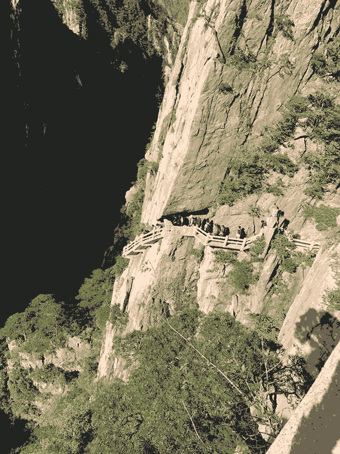 到達(dá)峽谷谷底,我們便開(kāi)始盡情的拍照,等到團(tuán)里的其他人全到齊后我們便開(kāi)始做纜車(chē)到山頂,繼續(xù)前行。導(dǎo)游領(lǐng)頭帶著我們向玉屏樓方向出發(fā),一路上導(dǎo)游繼續(xù)給我們講解,有龜兔曬跑,龜魚(yú)對(duì)望,獅子搶球。等,千姿百態(tài),惟妙惟肖,玉屏樓的附近,有幾顆古老的松樹(shù),其中一顆叫迎客松,好像時(shí)刻都在歡迎有課的到來(lái),還有課叫送客送,他好像在說(shuō):“祝您好走,歡迎下次再來(lái)!”