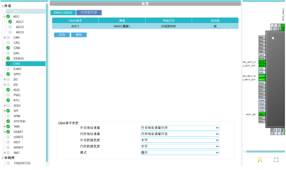 注意:其他外設配置后可直接使用,DMA配置后程序要做相應的修改