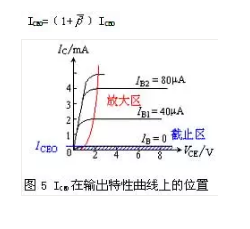 相當(dāng)基極開路時(shí),集電極和發(fā)射極間的反向飽和電流,即輸出特性曲線IB=0那條曲線所對應(yīng)的Y坐標(biāo)的數(shù)值,如圖5所示。