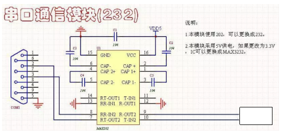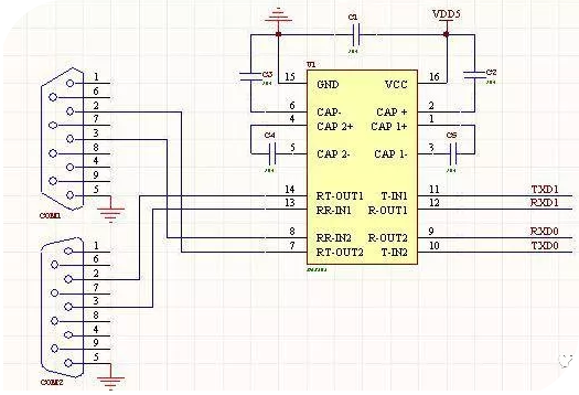 3線連接方式,對應(yīng)的是母頭,工作電壓5V,可以使用MAX202或MAX232。