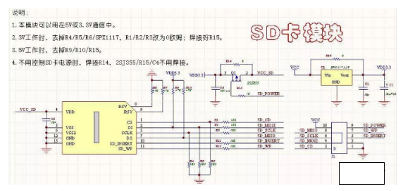 本電路與SD卡的封裝有關(guān),注意與封裝對應(yīng)。此電路可以通過端口控制SD卡的電源,比較完善,可以用于5V和3.3V。但是要注意,有些器件的使用,5V和3.3是不一樣的。