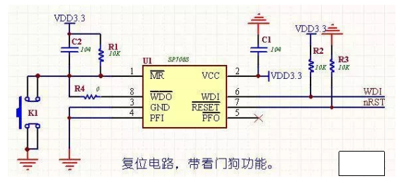 帶看門狗和手動(dòng)復(fù)位,價(jià)格便宜(美信的貴很多),R4為調(diào)試用,調(diào)試完后焊接好R4。