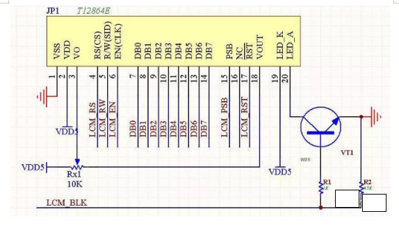 本電路是常見的12864電路,價(jià)格便宜,帶中文字庫。可以通過PSB端口的電平來設(shè)置其工作在串口模式還是并行模式,帶背光控制功能。