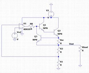 假設(shè)短路到GND的最大電流是1A,設(shè)計Rsc=0.6Ω,Ishort=VBE/Rsc。