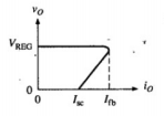 這種電路設(shè)計的保護(hù)電流是Ifb,到輸出Vo短路,電壓降低的過程。只要觸發(fā)到輸出電流為Ifb的時候,Q3就會導(dǎo)通,運(yùn)放輸出低電平,在Q1和Q2關(guān)閉的過程中,輸出電壓也在慢慢降低,Q3基極電壓需要R3和R4分壓,那么Q3的基極電壓是圖中2點(diǎn)處電壓減去out電壓,輸出電壓out降低,就會讓Q3飽和加深,讓Q1和Q2截止的更快。此時就能讓流過Rfb的電流從Ifb過渡到降低為Isc,實(shí)現(xiàn)輸出過載保護(hù)的電流折回效果,效果如下圖所示。