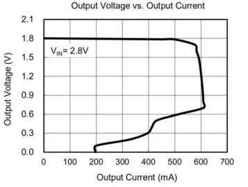 目前市場大部分LDO都采用這種電流折返保護(hù)機(jī)制,當(dāng)輸出電壓為1.8V時,輸出電流的最大值和輸出Vout電壓有關(guān)系。在輸出到0.7-1.8V時,此時輸出是異常的,LDO的輸出電流限制在約為0.6A左右。當(dāng)輸出電壓再進(jìn)一步降低,低于0.7V的時候,電流限制作用更加明顯,輸出只能輸出0.4A。當(dāng)輸出為0時,輸出電流只有200mA,起到了輸出短路的時候,保護(hù)LDO的要求;即使輸出長期處于短路的狀態(tài),LDO內(nèi)部的主要發(fā)熱器件,BJT也不會因?yàn)楦邷囟鵁龤А?/span>
