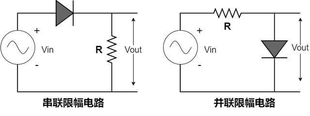 根據(jù)電路中二極管的位置,限幅電路可分為以下兩種:
