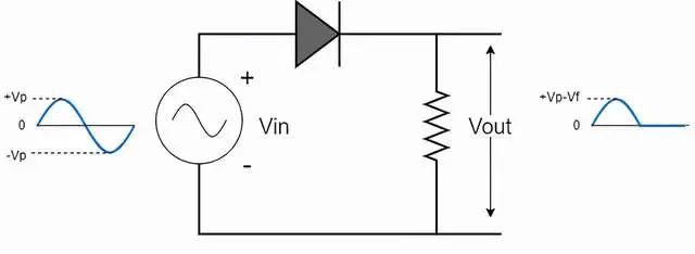 這里需要注意的是,負(fù)半周Vin為負(fù),Vf是二極管的正向壓降。
