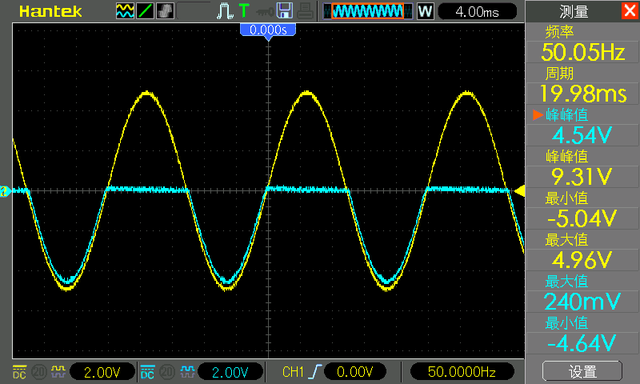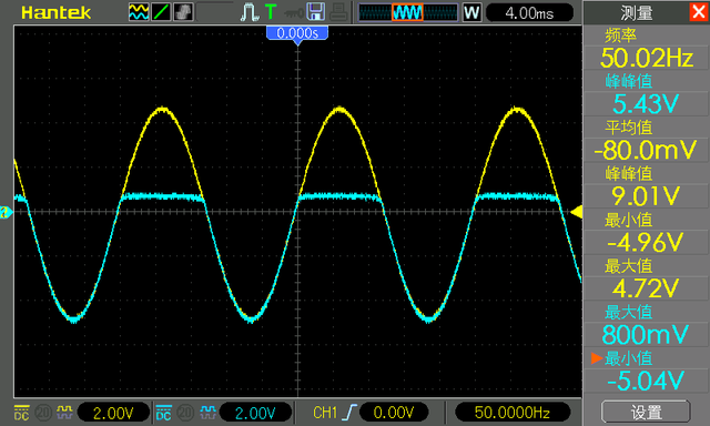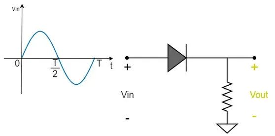 在此期間,輸出與輸入完全相同。因此,輸出電壓恰好等于輸入信號的正半周。