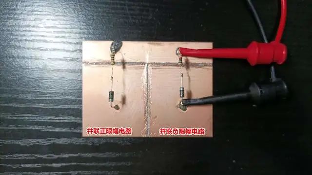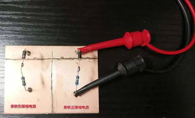 左邊的是之前焊接的串聯(lián)負(fù)向限幅電路,右邊的是串聯(lián)正向限幅電路。