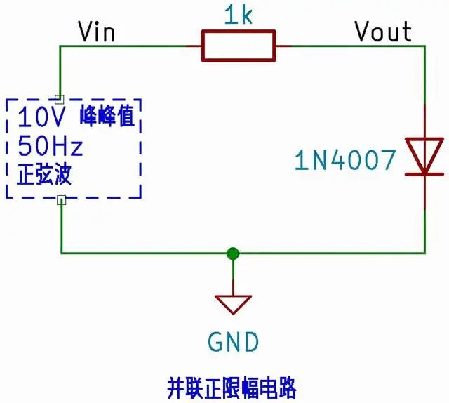 我們用下面的電路測試并聯(lián)正向限幅電路: