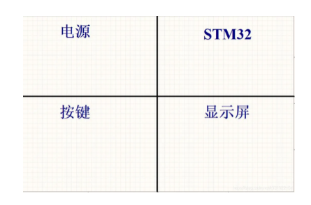 如上圖所示,用線把整張?jiān)韴D劃分好區(qū)域,和各個(gè)區(qū)域?qū)懮瞎δ苷f明,如:電源、STM32等。
