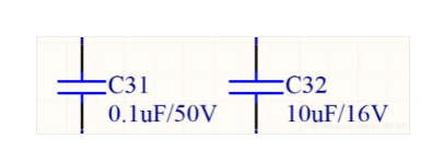 如上圖所示,每個(gè)電容都寫上了容值和耐壓。針對(duì)高精度電容,也可以寫上精度,或者是材質(zhì)。