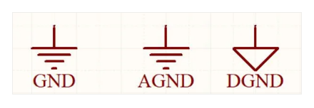 如上圖所示,只有一個(gè)地平面,則用GND。有數(shù)字地和模擬地,則用AGND、DGND。