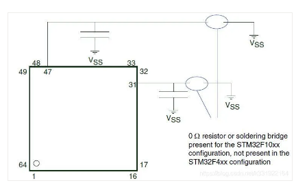 如上圖所示,圓圈中可放置0R電阻,使用F103時(shí),把0R焊上,電容不焊。使用F407時(shí),把電容焊上,0R不焊。