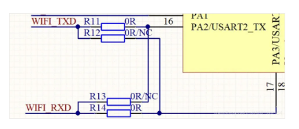 如上圖所示,假設(shè)工程師還不確定是RX對(duì)TX還是RX對(duì)TX時(shí),可以使用四個(gè)電阻來實(shí)現(xiàn)這兩種接法。(NC為不接)