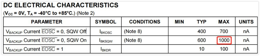 DS1339U-33+在Vbat供電時(shí),最大的供電電流是1uA,125mA的電池能用多久,125x1000/1=125000小時(shí),按照這樣計(jì)算電池能用14年,但是電池的自耗電3年內(nèi)10%,也就是112.5mA,也能用12.8年,那這個(gè)時(shí)間已經(jīng)很長(zhǎng)了,考慮到氣候溫度的影響,再怎么用也有6年沒(méi)問(wèn)題。